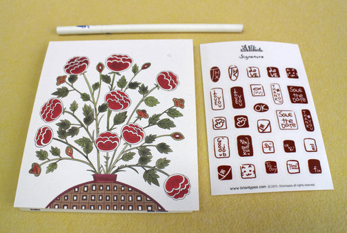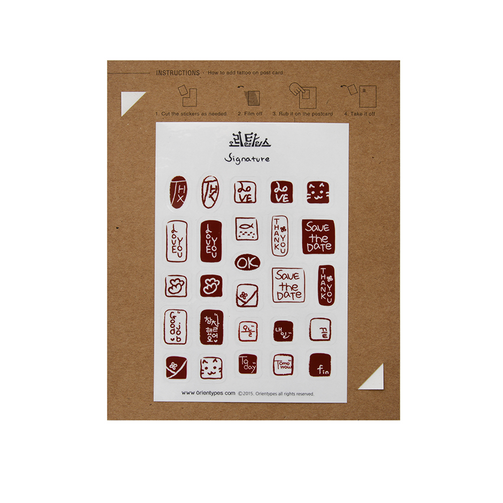 Finally we decided to use STICKER instead of a stamp. You many know that most of oriental paintings have a seal or signature. So we thought that our designs have to be a set with tattoo sticker to make them perfect or be special.